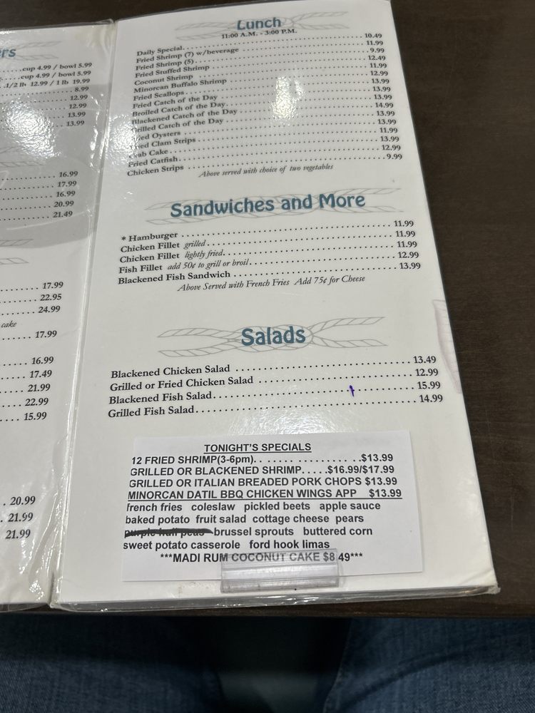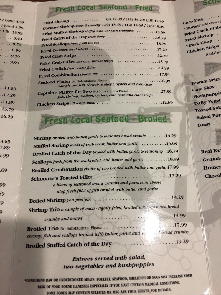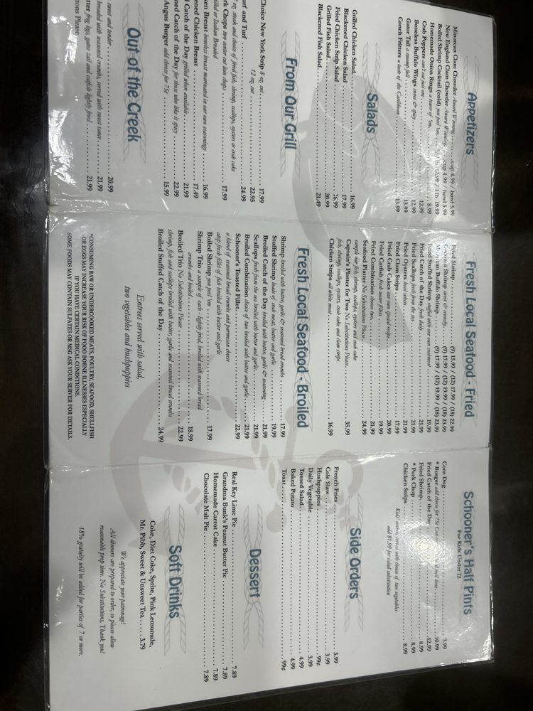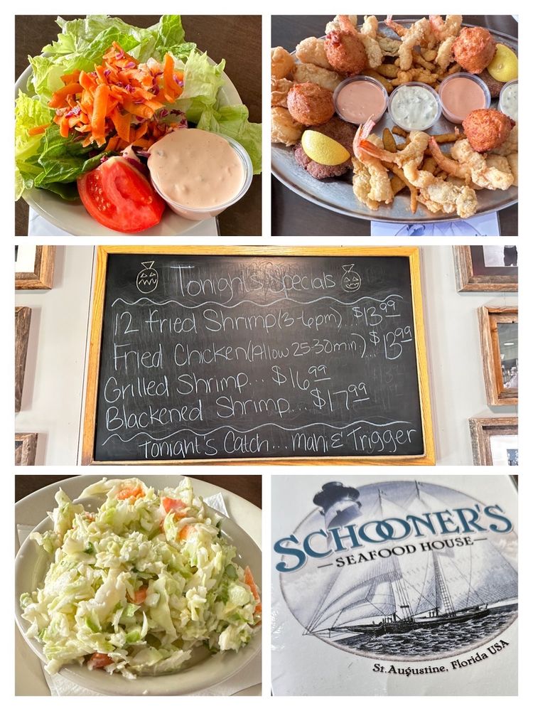 Schooner's Seafood House, located in Saint Augustine, FL, offers a delightful seafood experience with options for dine-in, takeout, and even catering. The menu features a variety of appetizers like Minorcan Clam Chowder, Conch Fritters, and Gator Tail, as well as salads and entrees showcasing fresh local seafood. Customers rave about the Trigger fish, a rare find that impressed even the most discerning palates. The attentive service, highlighted by servers like Kate, adds to the overall dining experience. Whether you're a seafood lover or prefer chicken tenders, Schooner's has something for everyone. With reasonable prices and a cozy atmosphere, Schooner's is a must-visit for seafood enthusiasts in the area. I highly recommend trying their stuffed shrimp for a flavorful and satisfying meal.